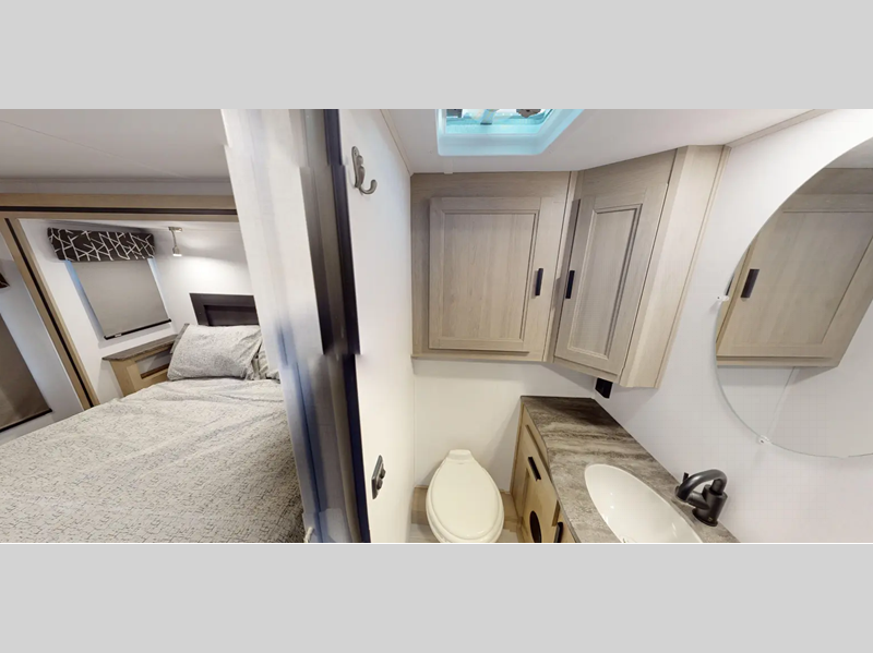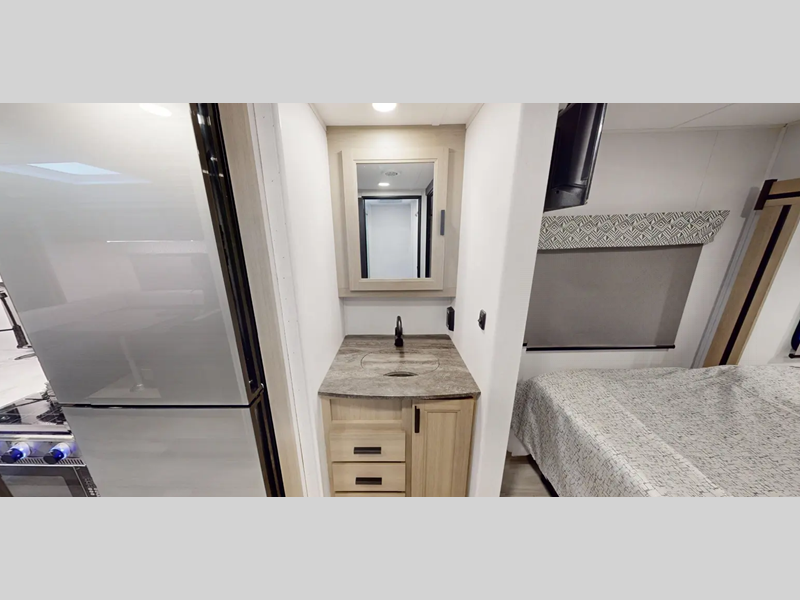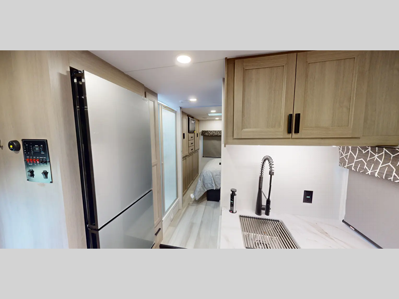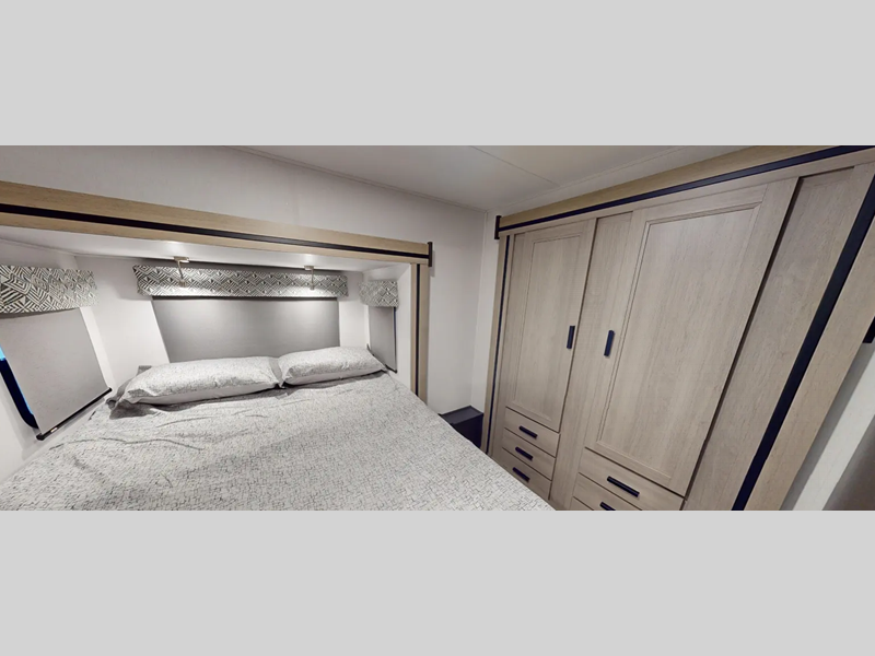 Each model includes the EZ Ryde premium suspension for an exception driving experience, along with a 10" touchscreen CarPlay/Android radio with USB and Bluetooth so you can listen to your favorite tunes as you travel. There is a keyless entry you are sure to appreciate plus blackout roller shades in the living room and bedroom for added privacy. Each coach also features a gel coat exterior fiberglass, a fiberglass roof and 2" aluminum framed laminated sidewalls for added durability.
