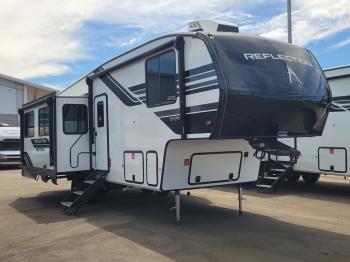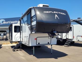 With any Reflection 150 Series fifth wheel by Grand Design, there is more available payload capacity and a broader range of half-ton trucks capable of towing this fifth wheel, and no slider hitch is needed thanks to the 90-degree turning radius which makes them short bed friendly and easier to tow. The mandatory Ultimate Power package provides a "One-Touch" automatic leveling system and a detachable power cord with LED light for easy setup, plus motion sensor pass-through lighting and entry lighting, and the Tire Linc TPMS will help you stay safe on the road. The interior offers residential cabinetry and premium Congoleum flooring, to the booth dinette and residential-style window treatment. Make your refined decision today!ย