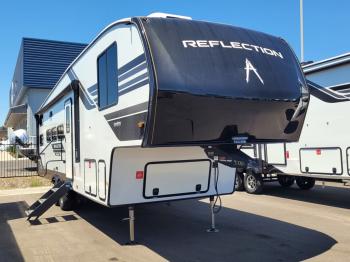 With any Reflection 150 Series fifth wheel by Grand Design, there is more available payload capacity and a broader range of half-ton trucks capable of towing this fifth wheel, and no slider hitch is needed thanks to the 90-degree turning radius which makes them short bed friendly and easier to tow. The mandatory Ultimate Power package provides a "One-Touch" automatic leveling system and a detachable power cord with LED light for easy setup, plus motion sensor pass-through lighting and entry lighting, and the Tire Linc TPMS will help you stay safe on the road. The interior offers residential cabinetry and premium Congoleum flooring, to the booth dinette and residential-style window treatment. Make your refined decision today!ย