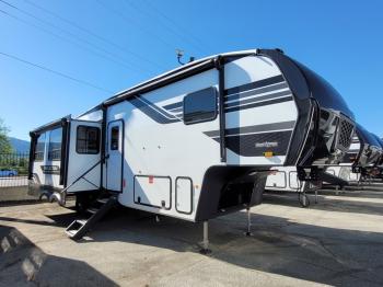 Sleeps 5 Slides 3 Length 32 ft 10 in Ext Width 8 ft Ext Height 12 ft 3 in Hitch Weight 1985 lbs GVWR 11995 lbs Dry Weight 10325 lbs Fresh Water Capacity 74 gals Grey Water Capacity 87 gals Black Water Capacity 47 gals Tire Size ST235/80R16RLE Furnace BTU 35000 btu Available Beds Queen Refrigerator Type 12V Refrigerator Size 16 cu ft Cooktop Burners 3 Shower Size 30" x 34" Number of Awnings 2 LP Tank Capacity 30 lbs Water Heater Type On Demand Tankless AC BTU 15000 btu TV Info LR 40" TV Awning Info 13' & 10'6" One-Touch Electric LED Axle Count 2 Number of LP Tanks 2 Shower Type Radius Electrical Service 50 amp Solar Wattage 370 watts Similar Fifth Wheel Floorplans