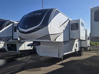 Each Solitude fifth wheel by Grand Design features a 101" wide-body construction, heavy duty 8,000 lb. axles, frameless tinted windows, and high-gloss gel coat sidewalls. You can camp year around thanks to the Weather-Tek Package that includes a 35K BTU high-capacity furnace, an all-in-one enclosed and heated utility center, and a fully enclosed underbelly with heated tanks and storage. Inside, you'll love the premium roller shades, hardwood cabinet doors, solid surface countertops, plus residential finishes throughout to make you truly feel at home. Each model also includes a MORryde CRE3000 suspension system, self adjusting brakes, and a MORryde pin box that will provide smooth towing from home to campground. Affordable luxury is possible with the Solitude fifth wheels; choose yours today!