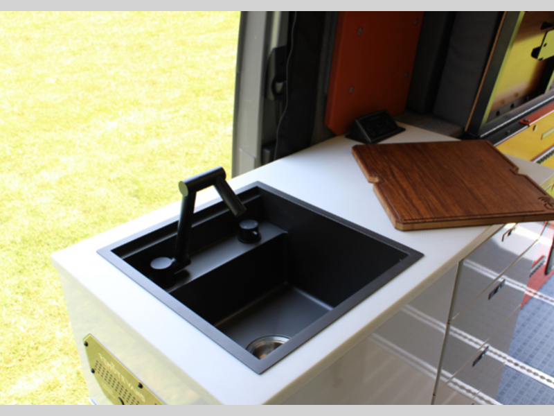 - Large Stainless-Steel Sink (16" x 17" x 9") & Collapsible Faucet