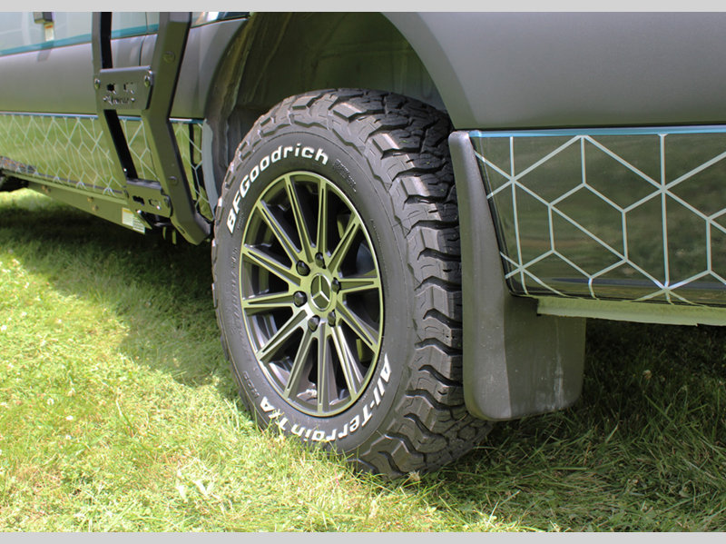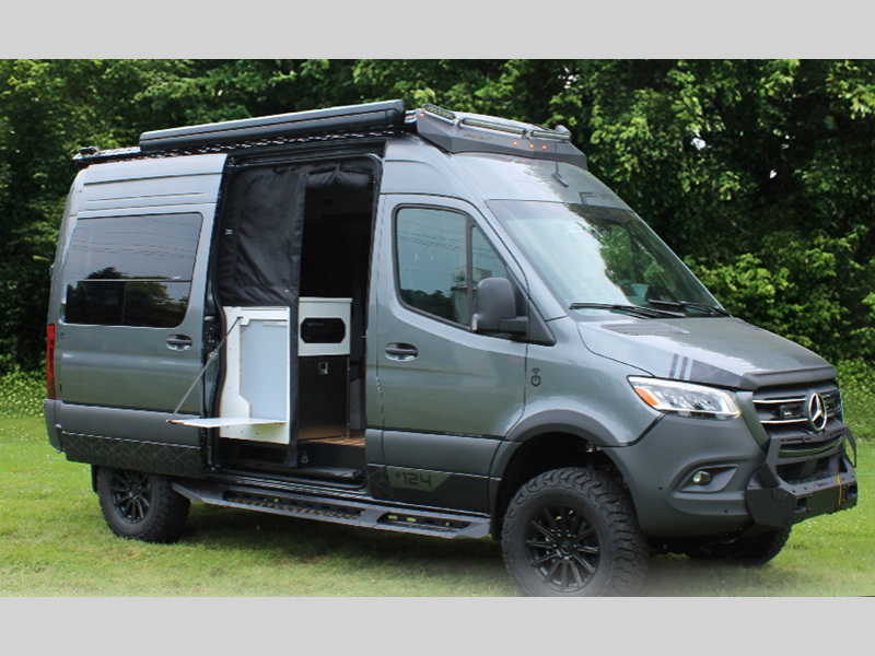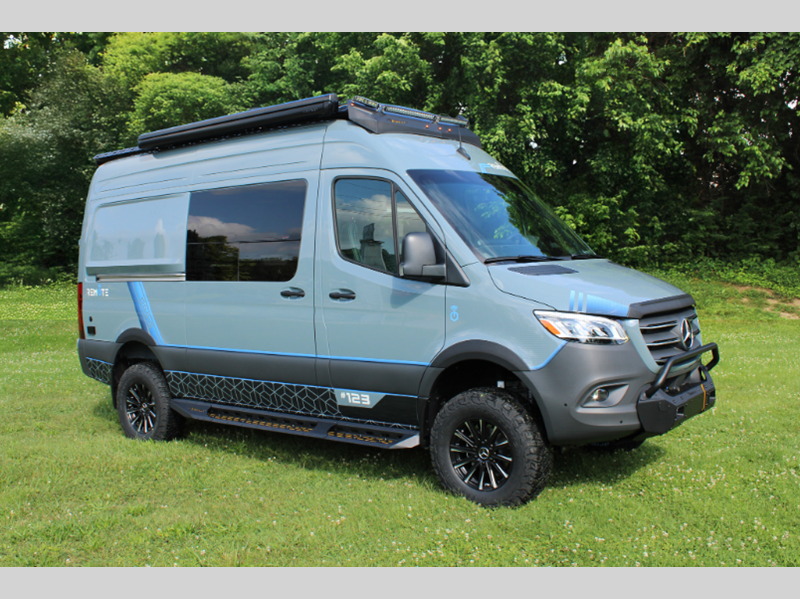 Sleeps 3 Length 20 ft Ext Height 10 ft Int Height 6 ft 2 in Exterior Color Branding Kits; Ocean Blue, Dark Mission, Ghost Silver GVWR 9050 lbs Fresh Water Capacity 30 gals Grey Water Capacity 24 gals Tire Size 5x KO2/KO3 275/70/R17 Fuel Type Diesel Engine 4 Cylinder High Power Twin Turbo Chassis Mercedes-Benz Sprinter 2500 AWD Horsepower 208 hp Fuel Capacity 24.5 gals Wheelbase 144 in Refrigerator Type 65L Fridge/Freezer Cooktop Burners 1 Water Heater Type Hydronic Electrical Service 30 amp -