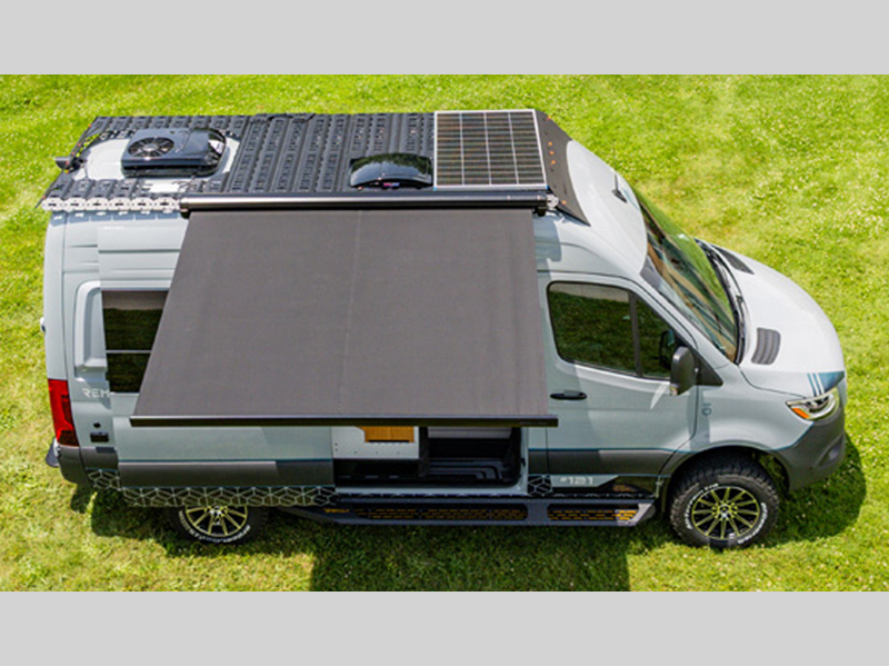Sleeps 3 Length 21 ft Ext Height 10 ft Int Height 6 ft 2 in Exterior Color Branding Kits; Sunset Orange or Dark Mission GVWR 9050 lbs Fresh Water Capacity 30 gals Grey Water Capacity 24 gals Tire Size KO2/KO3/245/70/R17 Fuel Type Diesel Engine 4 Cylinder High Power Twin Turbo Chassis Mercedes-Benz Sprinter 2500 AWD Horsepower 208 hp Fuel Capacity 24.5 gals Wheelbase 144 in Refrigerator Type 65L Fridge/Freezer Cooktop Burners 1 Water Heater Type Hydronic Awning Info 8' Powered w/LED Lighting Electrical Service 30 amp -