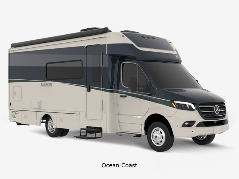 Sleeps 4 Slides 1 Length 25 ft 6 in Ext Width 7 ft 7 in Ext Height 11 ft Int Height 6 ft 8 in Interior Color Harmony, Harmonious Exterior Color Stellar Standard Graphics. Bay Mist ll, Glacier, Mineral ll Full-Body Paint Hitch Weight 5000 lbs GVWR 11030 lbs Fresh Water Capacity 37 gals Grey Water Capacity 41 gals Black Water Capacity 41 gals Furnace BTU 20000 btu Generator 3800W RVMP Flex Power Fuel Type Diesel Engine 2.0L High Output Turbo Diesel 4-Cylinder Chassis Mercedes Benz RWD Sprinter Fuel Capacity 24.5 gals Wheelbase 170 in Number Of Bunks 1 Available Beds Full Refrigerator Type Two Door Compressor Driven Refrigerator Size 10 cu ft Convection Cooking Yes Cooktop Burners 2 Shower Size 24" x 32" Number of Awnings 1 Axle Weight Front 4410 lbs Axle Weight Rear 7720 lbs LP Tank Capacity 50.76 lbs Water Heater Type Truma AquaGo Comfort Plus Tankless AC BTU 15000 btu Basement Storage 43 cu. ft. TV Info Coach 32" HDTV, BR 24" LED HDTV Awning Info 16' Power with LED Lights & Bluetooth Control Gross Combined Weight 15250 lbs Shower Type Standard Electrical Service 30 amp Similar Floorplans