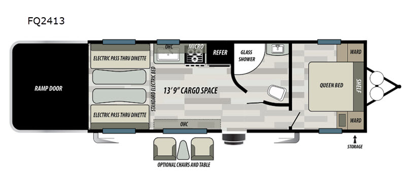 Forest River has constructed the Stealth to be a unit that is ready for anything. With it's "off road" approved chassis, the Stealth will ensure that every weekend getaway will be a memorable one. Loading and unloading your toys will be easier than ever thanks to the convenient ramp door. Each unit includes full bath amenities so you don't have to use the camps facilities and three burner range plus a microwave oven included in each model allows you to create all your meals just like you do at home!